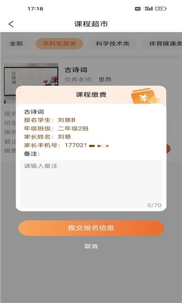 家长借助家校通教学平台,能够便捷地查看并报名课程、在线完成费用缴纳,及时接收学校发布的通知与消息,随时了解孩子的学习动态。