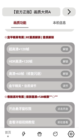 mfhzcc无任务画质大师是一款能为用户带来全新画面效果的辅助软件,操作简单,适用于不同设备及版本,兼容性强,可为更多用户提供有力支持,且不会导致封号,无需root权限,便捷高效,拥有流畅、高清、超高清等多种画质选项,满足用户需求。