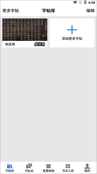 2、首页,在“字帖库”界面点击添加更多字帖至软件的字帖库。