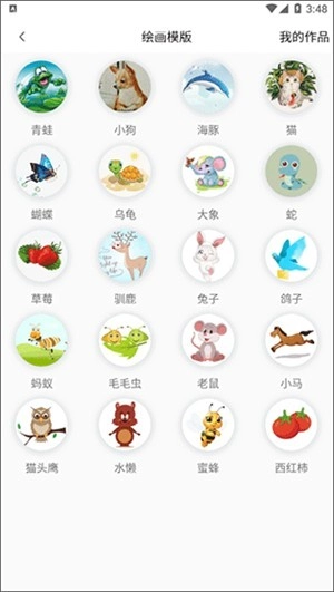 2、这里以“临摹”功能为例,平台提供青蛙、小狗、海豚等多种绘画模板,我们可以从中挑选一个进行使用。