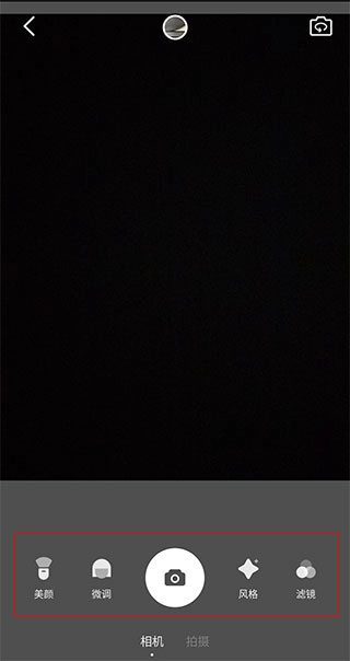 2、选定相机后就能进入美颜相机界面,界面上方是相机取景框,取景框下方排列着各类美颜滤镜功能,大家可以根据自身需求进行使用。