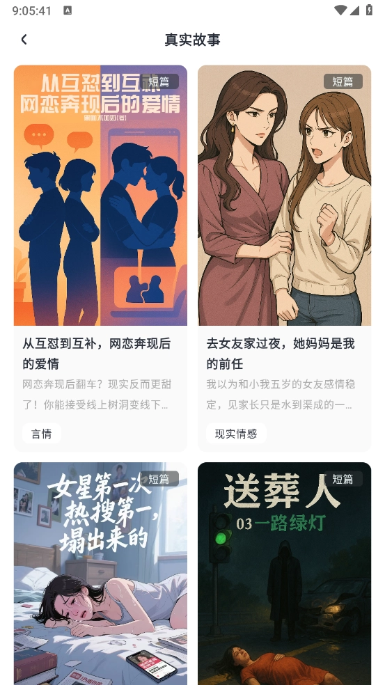 薯条看看是一款主打短篇阅读的小说软件,这里汇聚了全网热门的短篇小说资源,覆盖霸道总裁、悬疑探案、穿越重生、科幻奇幻等多种题材,你想看的类型这里都能找到。无需在各个网站间来回搜寻资源,打开软件就能直接阅读,而且它还能自动记录你的阅读进度。
