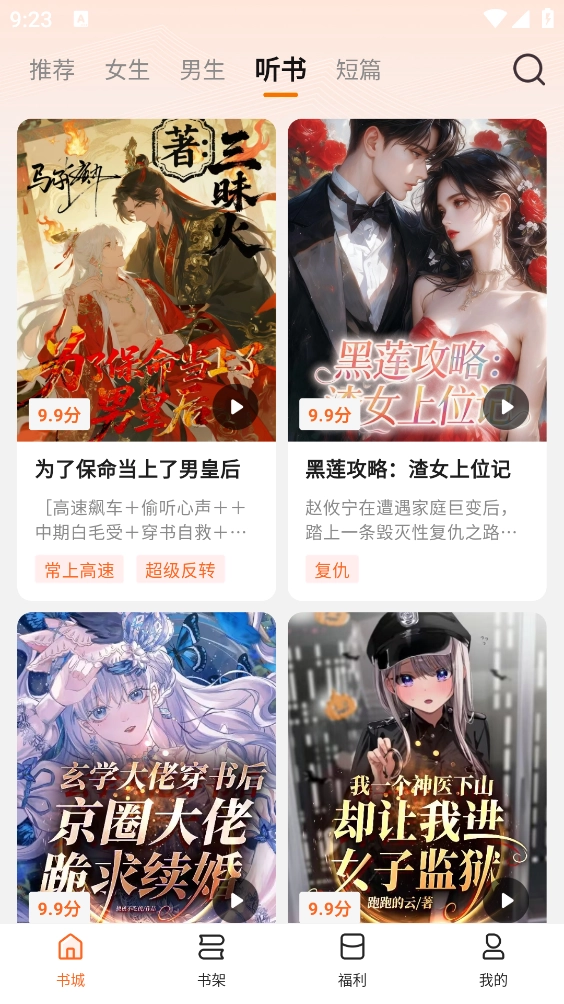 3、听书功能,解放双眼,让用户随时随地享受阅读的乐趣。