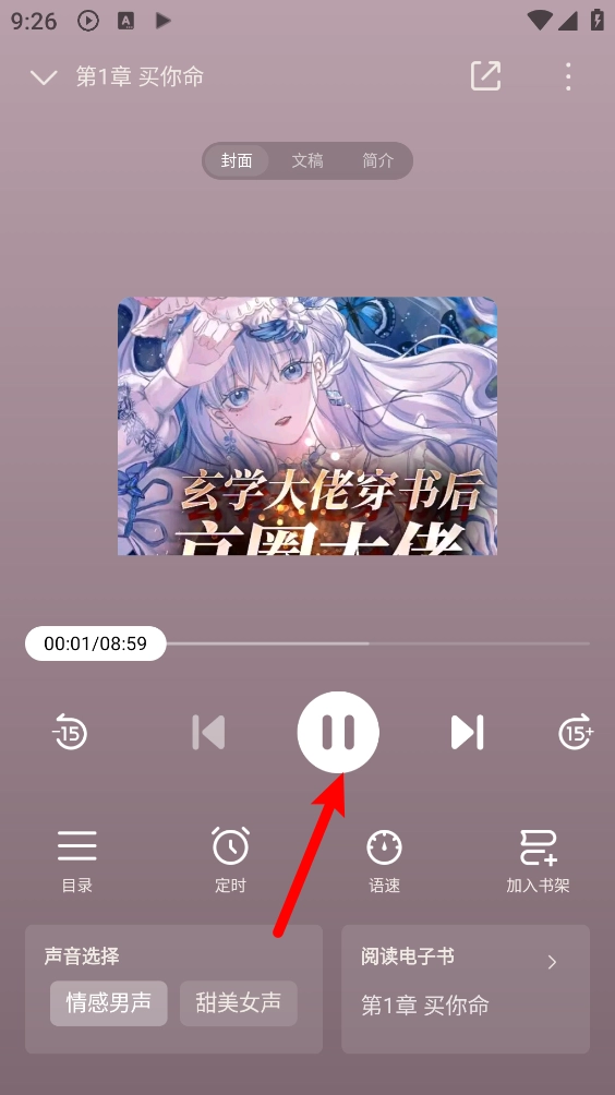5、最后打开播放页面就能开启听书体验,该页面支持定时、声音选择、倍速听书等功能。