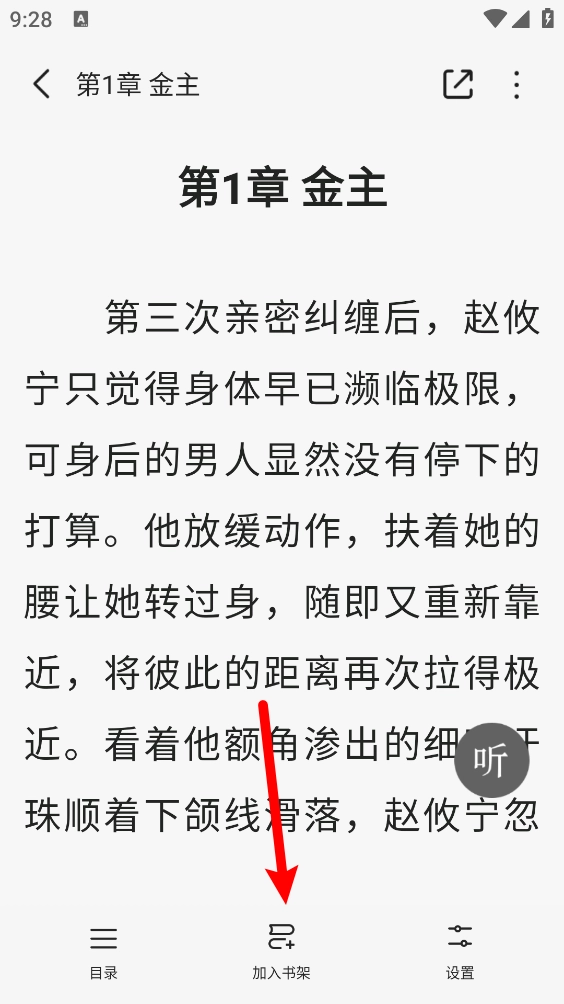 2、一键打开进入阅读界面,点击底部"加入书架"。