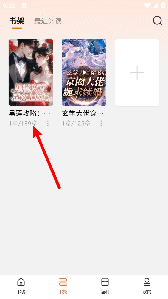 3、最后进入书架页面,如图所示,即可查看已添加的小说资源。