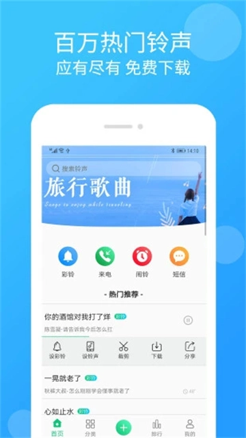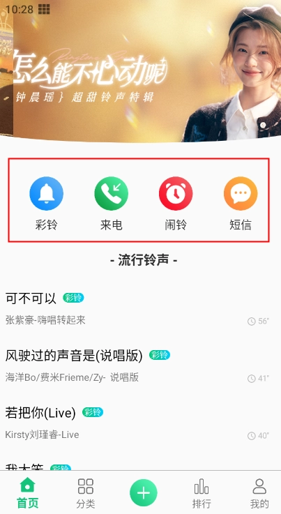 涵盖网络流行、轻音乐、DJ、欧美日韩、时下热播剧、个性搞笑、摇滚等热门铃声。