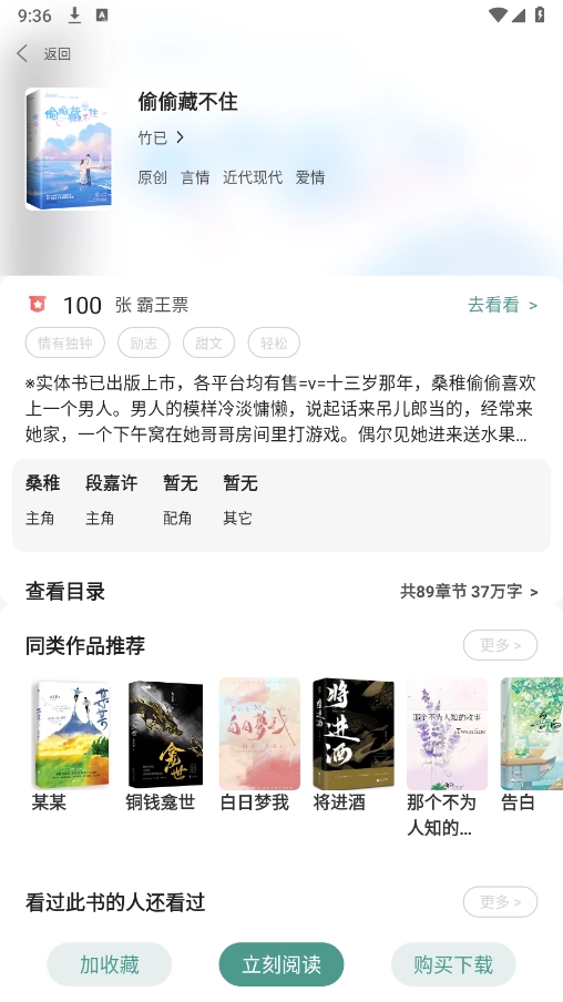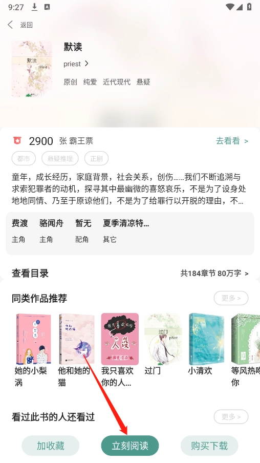 5、点击想要看的小说,点击立即阅读就可以了。