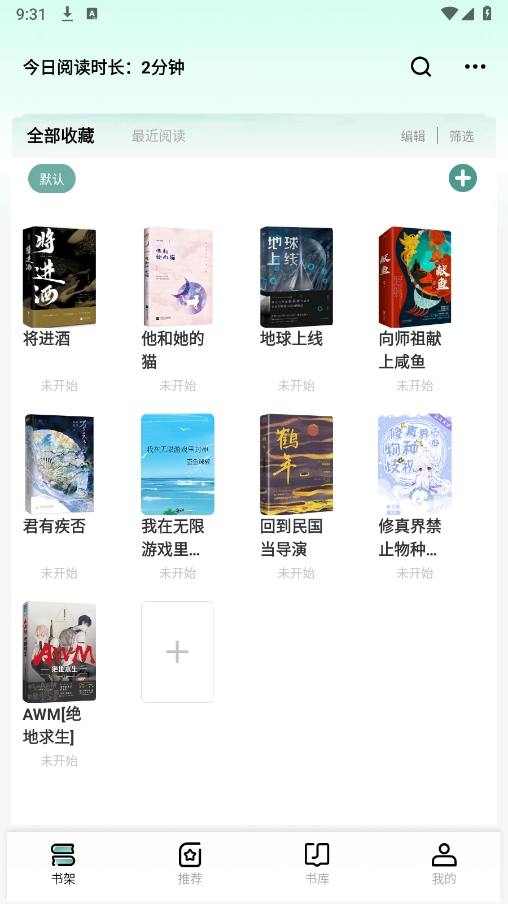 3、返回首页书架,可以看到全部收藏了。