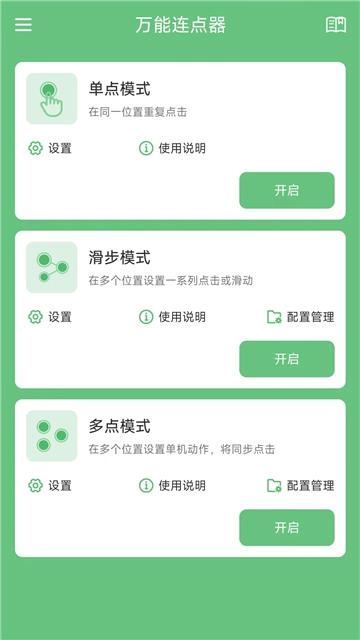 万能连点器能实现屏幕自动点击,让双手得到解放,可在短时间内完成快手连续点击加速,点击频率设置简单便捷;具备一键录制功能,能自动重复操作,轻松达成按键精灵般的效果。它体积小巧,不占用过多内存,能有效制作各类实用的应用辅助脚本,支持屏幕单点点击、多点循环点击、点击与滑动组合等多种手势操作。助力轻松搬砖,实现一键挂机。
