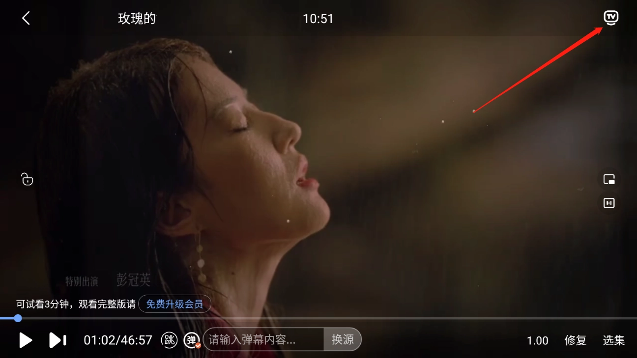 2、点击右上角的“TV”标志。