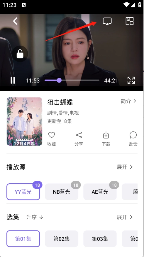 2、要是显示当前线路不支持投屏,可选择切换播放源。