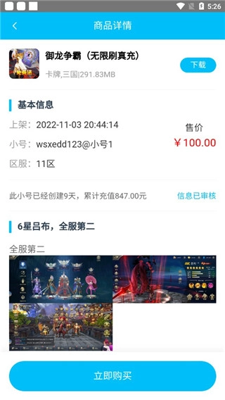 这时你能看到该商品的基本信息,点击“立即购买”按钮即可。