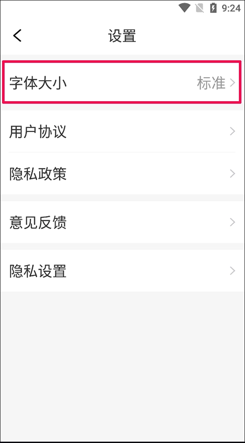 2、然后,在设置中找到并点击“字体大小”按键;