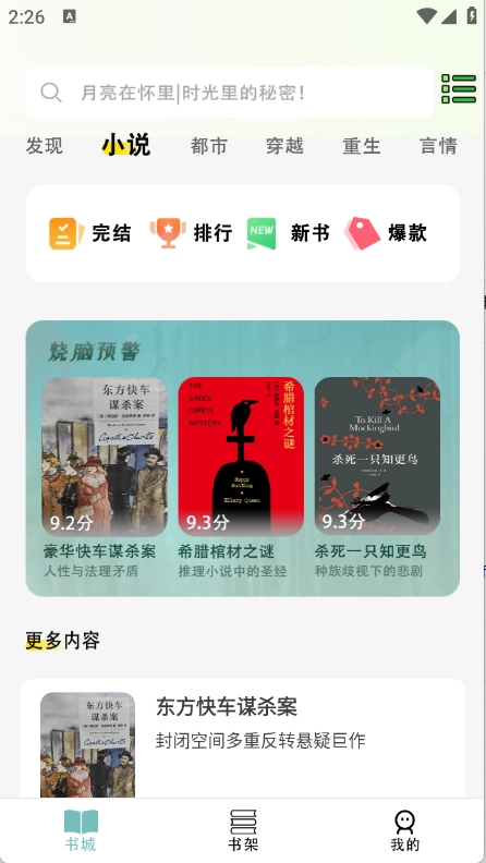 还能依据用户的阅读偏好进行智能精准推荐,让用户都能快速找到想看的小说;可以把常读的小说添加到书架,随时都能打开阅读,没有广告打扰,随时都能开启追书模式。