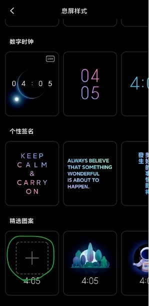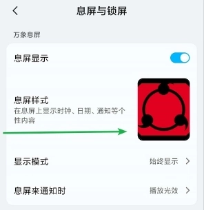 2、在列表中找到“ 息屏样式 ”,点击进入。