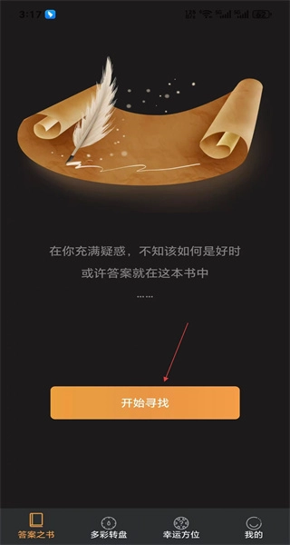 2、进入答案之书页面后,会看到提示语和“开始寻找”按钮,点击这个按钮,就能进入问题引导的相关界面。