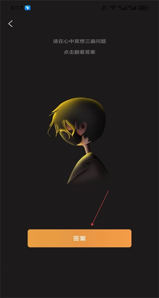 3、进入问题引导页面后,看到“请在心中想问题”的提示,按照指引在心中构思问题,然后点击页面上的答案按钮。