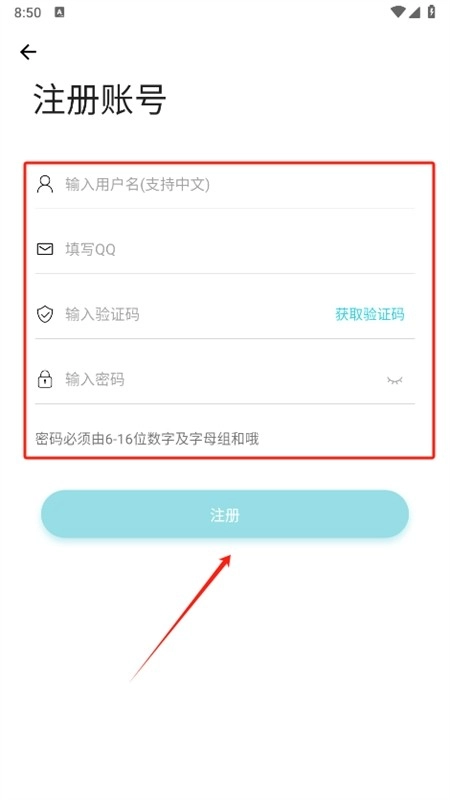 4、填写用户名、验证码等信息,设置好密码后,点击下方的“注册”按钮完成注册。