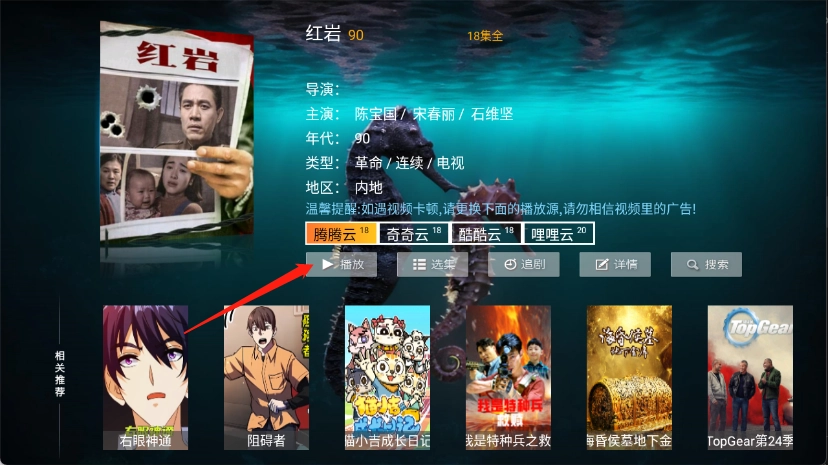 4、点开想看的影片进入详情页,点击播放。