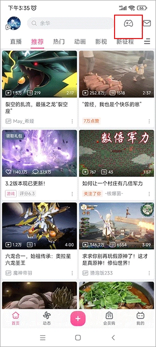 1、先安装哔哩哔哩游戏中心,接着点击搜索框旁的“游戏机”图标进入;