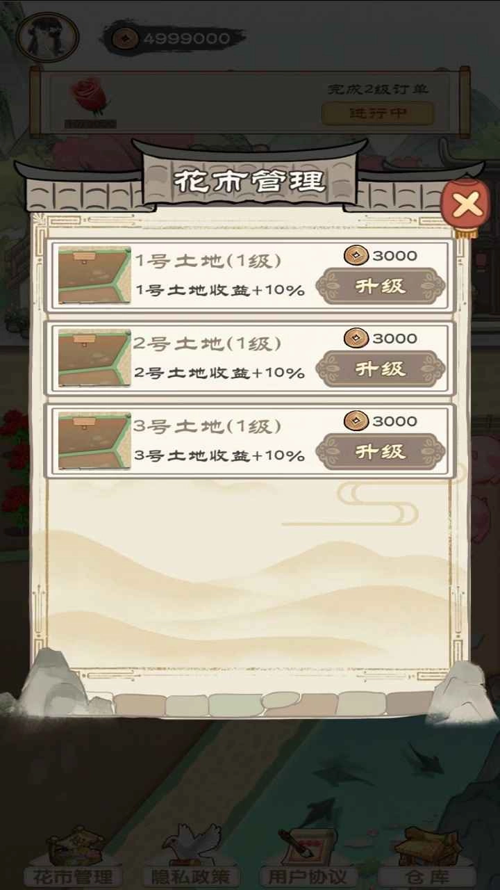 5、随着等级的逐步提升,玩家能够扩大土地范围,种植更多种类的植物,从而获取更高的收益。