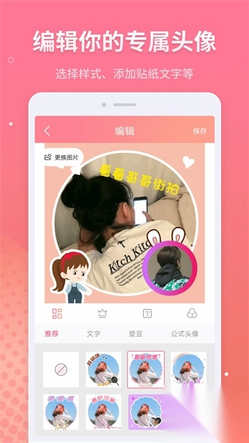 可以使用裁剪工具来调整头像的尺寸和摆放位置,还能为头像添加边框、贴纸、背景,或者自行添加文字。