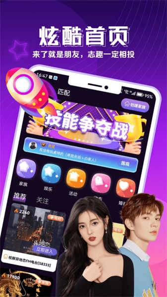 在多人在线大房间里,你可以尽情聊天、唱歌、互动,认识来自全国各地的有趣伙伴。每晚都有热闹的主题派对,帮你摆脱无聊时光。