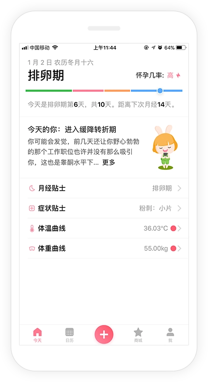 每天都会更新当天的宜忌、情绪提示等内容,很适合分享给闺蜜,能帮大家养成关注身体的好习惯