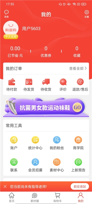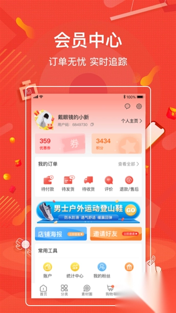 “我的”页面可集中管理订单、收货状态、优惠券等各类信息,购物流程清晰且高效。