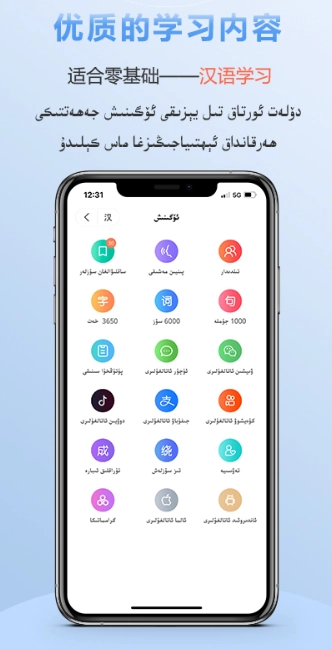 海量学习资源:3650汉字、6000词汇、1000句日常表达、1000成语全覆盖