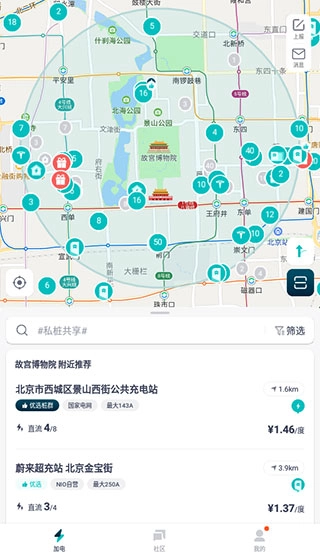 开启GPS定位权限后,系统会为您推荐周边的充电桩以及它们的实时使用状态。