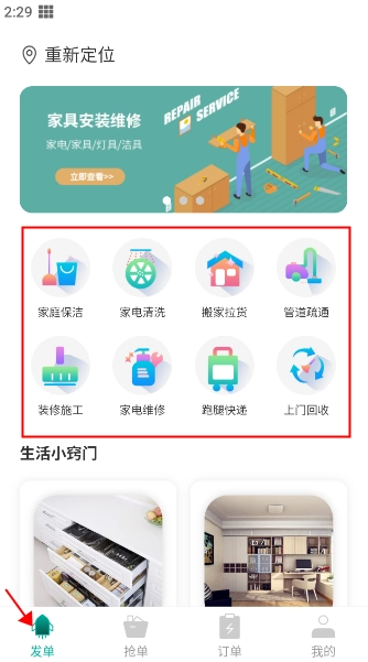 2、挑选所需的服务类别(例如家庭保洁、家电维修之类);