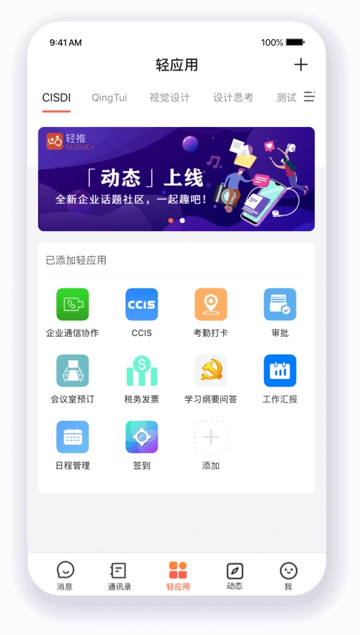 -日常办公场景中,员工能够借助轻推平台完成审批发起、日报查阅、会议室预约等操作;