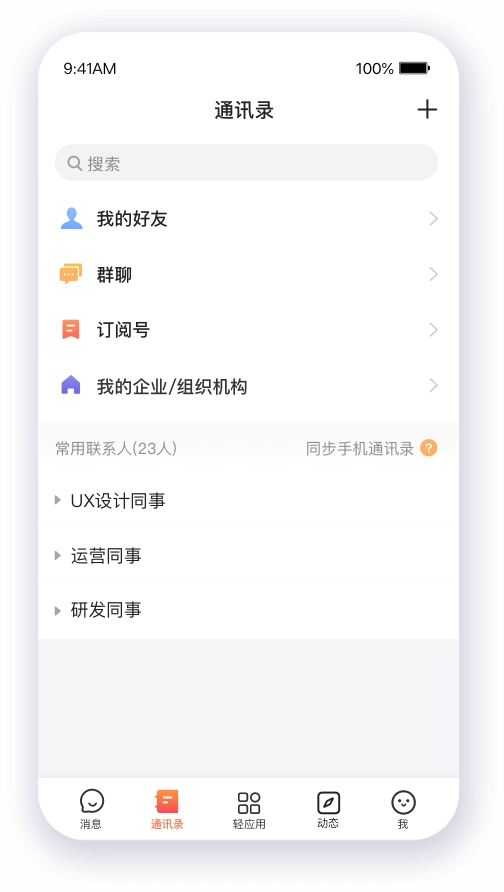 -通讯录系统:能够快速查找企业成员的联系方式,还支持对常用联系人进行收藏;