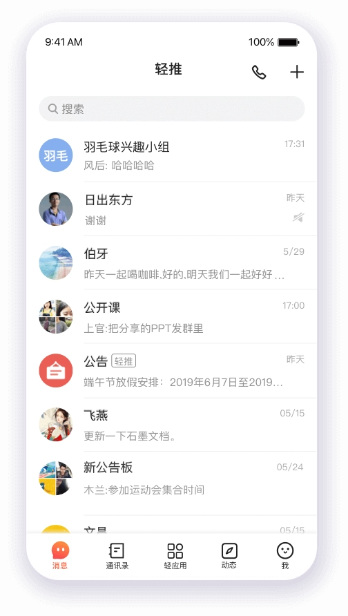 轻推不只是一款出色的企业沟通工具,更是一套完整的协同办公与组织管理数字化解决方案。它灵活的“访客模式”化解了企业外部协作和内部安全之间的冲突,完备的组织架构、文件管理、审批考勤等功能能够提高企业效率,减少运营成本。界面简洁、操作方便,适合各类企业用户使用。