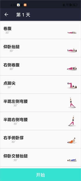 当你对动作足够熟悉后,点击“开始”按钮就能进入训练流程,接着依照视频的指导去完成每组动作,尽情感受身体燃脂的效果。