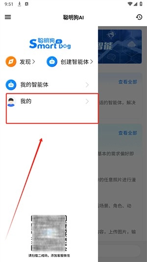 1、启动聪明狗AI后进入首页,点击右下角“我的”栏目,进入个人界面。