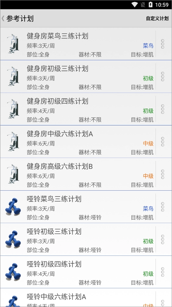 3、系统收录了多种计划,涵盖菜鸟、初级、中级等不同级别,用户可根据自身情况选择最适合的计划。