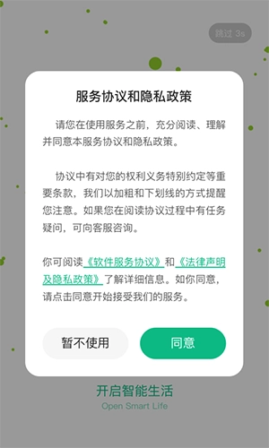 3.首次弹出权限请求窗口时,点击其中的隐私政策和服务协议链接,会跳转至外部浏览器打开相关内容