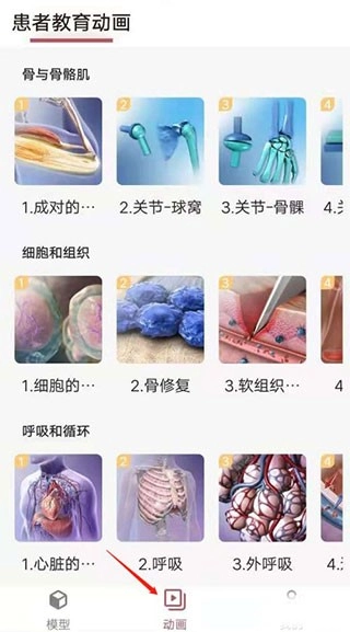 4、除了模型板块,3DBody解剖学还配备了内容丰富的动画视频资源。