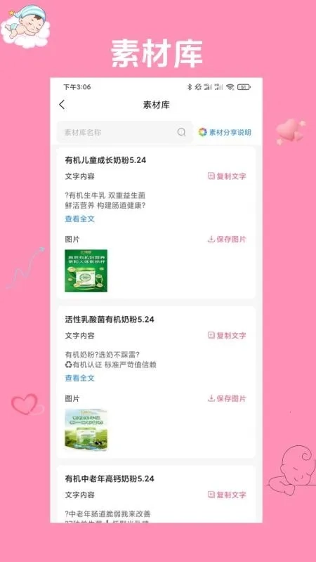 4. 分享盈利:平台为用户提供了丰富的素材资源,用户能够直接在线复制文字与图片,便于分享;一旦有人通过分享链接购物,用户就能获取相应收益。