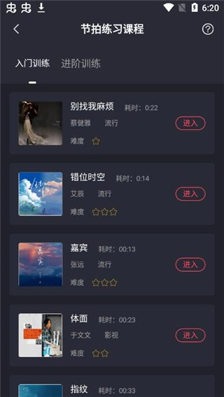 打开应用后,能直接查看声乐技巧、热门训练课程、推荐曲库等板块的内容。