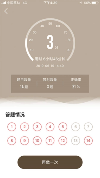 4、答题结束后,在答题结果页面即可详细了解自己的答题情况。