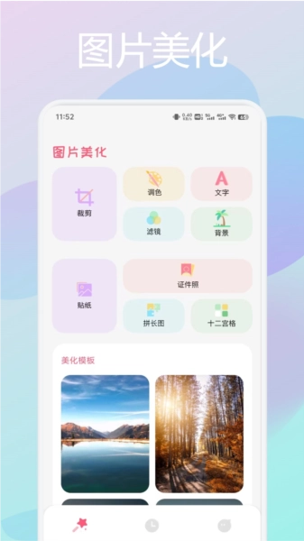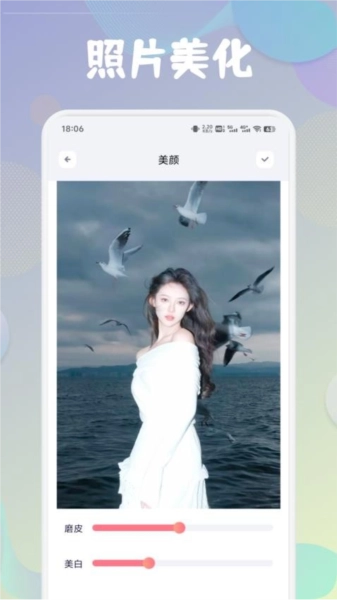 一键美颜:能够自动识别照片里的人物面部并进行优化,可实现皮肤平滑与美白的效果。