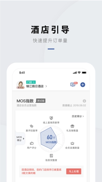 实时数据:核心业绩数据一手掌握,便于酒店管理层实时掌握运营动态。