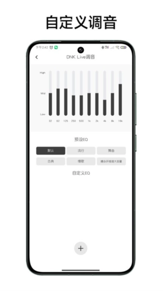 EQ均衡器:借助EQ均衡器,您能够自定义音效,对不同频率的音量进行调节,从而获得理想的听音体验。