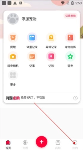 用户打开“铲屎官的日常”软件后,就能填写宠物的各类信息。