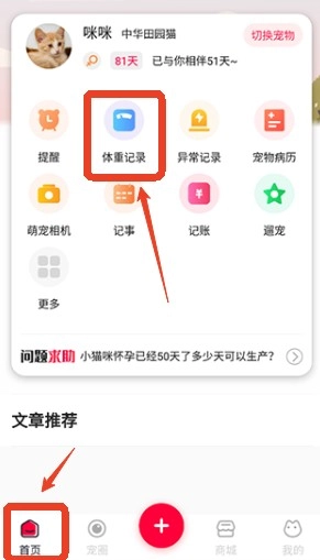 3、点击“体重记录”后,用户即可记录宠物的每日体重情况。
