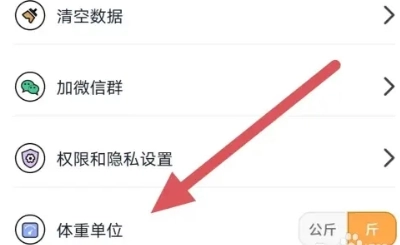 3、接着在设置页面里找到【体重单位】选项,点击进入后就能查看当前所使用的单位类型了。